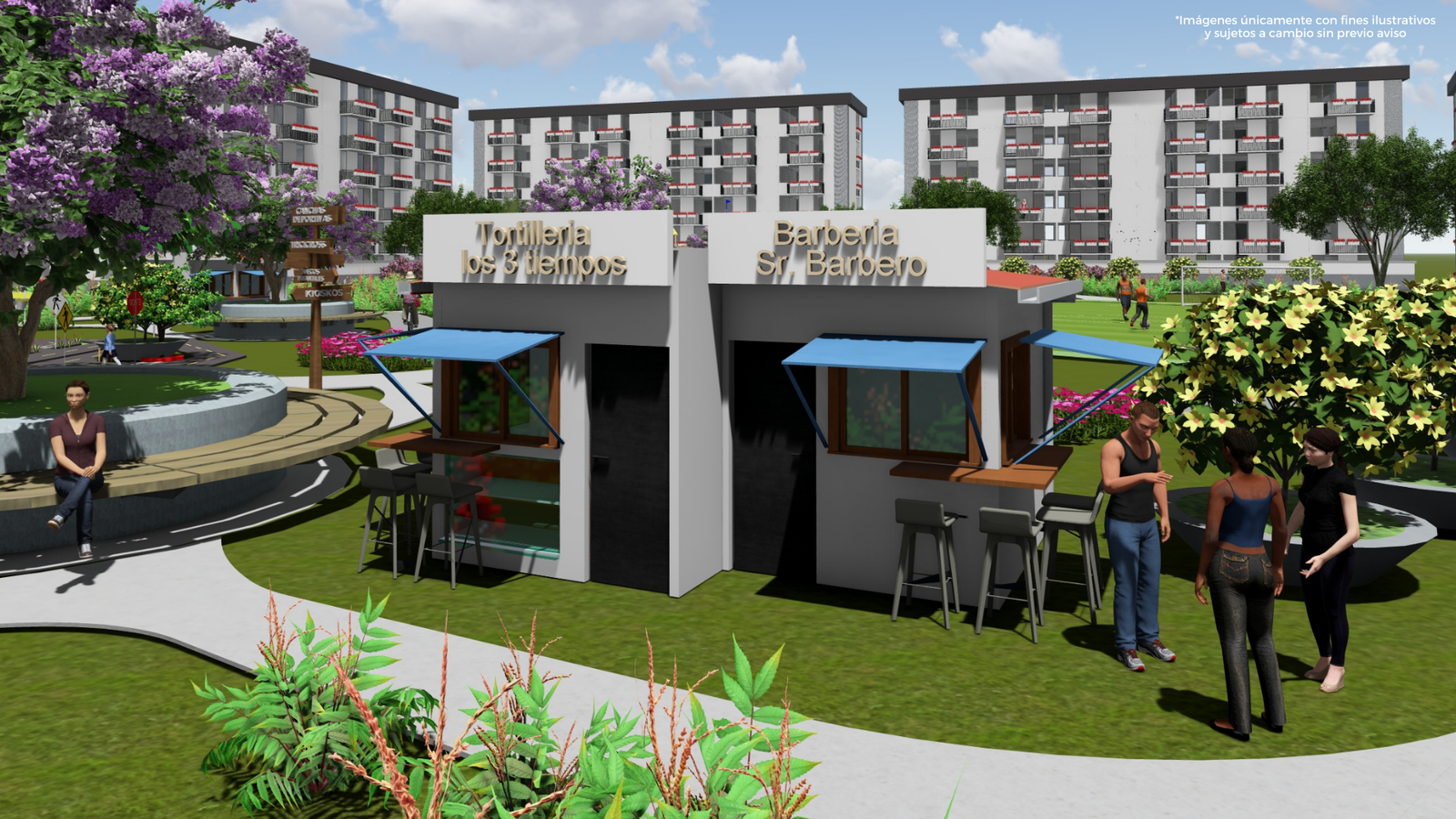 Dentro de las áreas de entretenimiento de cada condominio, de manera exclusiva para arrendar a nuestros residentes, se ubican varios kioskos, proveyéndolos de una excelente oportunidad para generar ingresos adicionales sin tener que alejarse de su hogar.