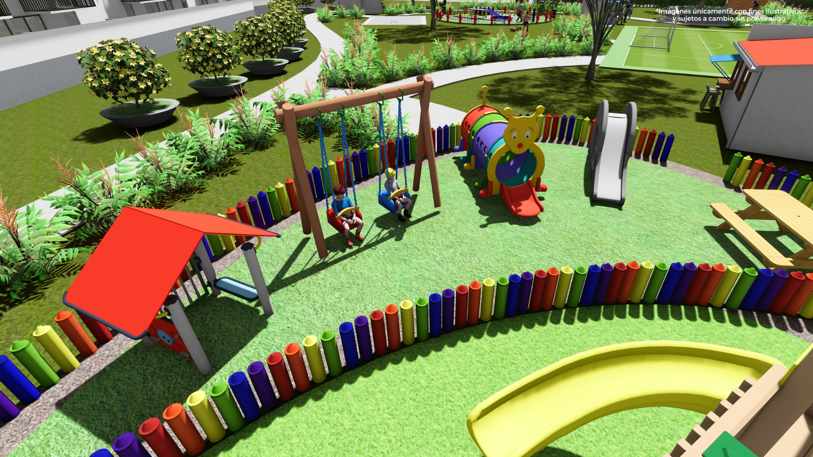 En resumen, el área de juegos para niños no solo es una adición colorida a cada condominio, sino un espacio seguro donde la diversión y el bienestar se fusionan, promoviendo una sensación de comunidad y tranquilidad entre los residentes.