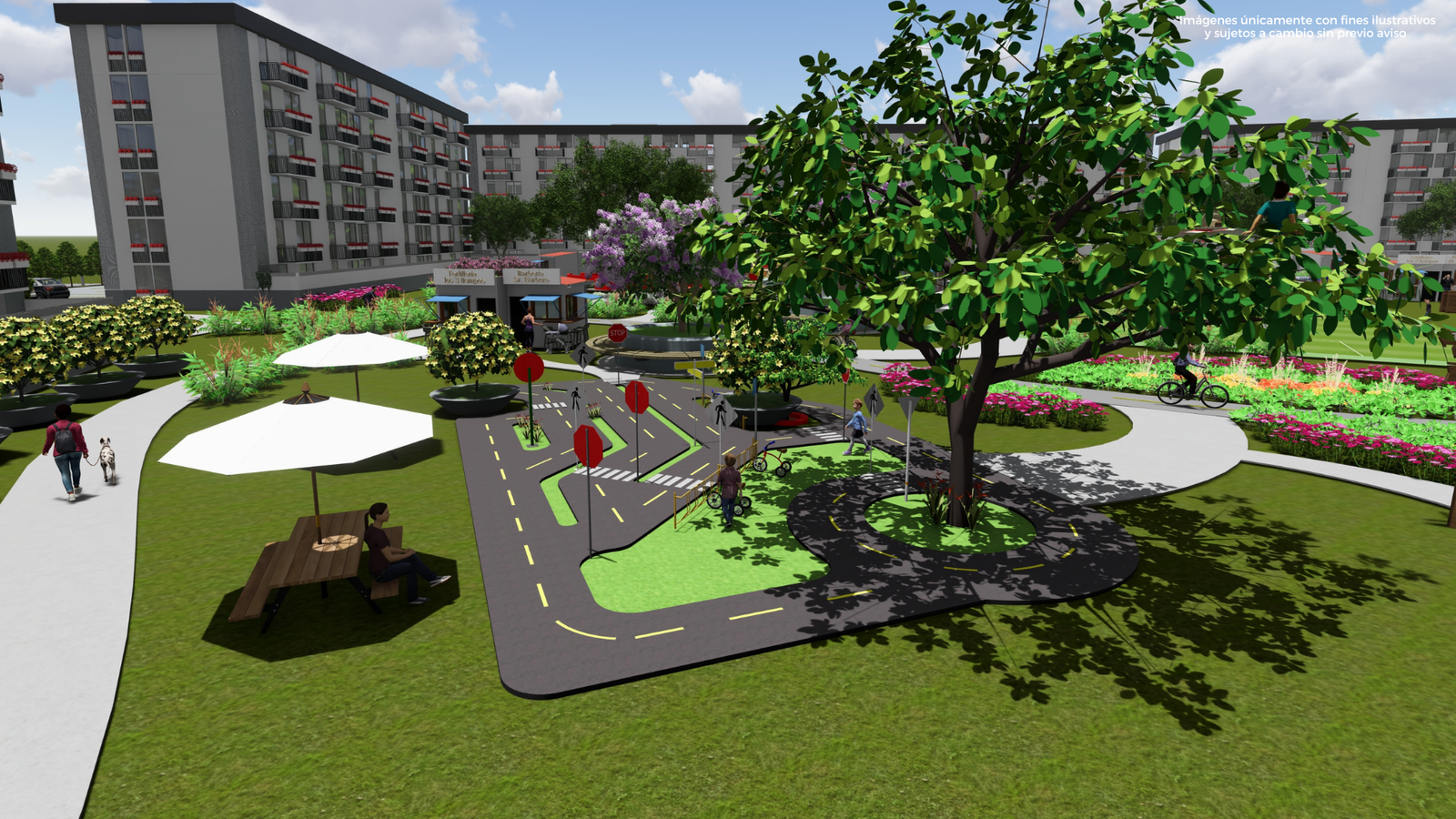 La ciclovía proporciona un lugar designado y protegido para que residentes de todas las edades disfruten del ciclismo de manera segura. Al estar ubicada dentro del condominio, crea un ambiente libre de preocupaciones de tráfico, permitiendo a los ciclistas disfrutar de su recorrido de manera relajada y sin obstáculos.